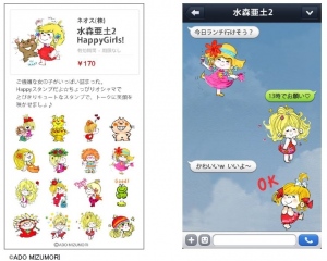 スマートフォンアプリ「LINE(ライン)」で好評の『水森亜土』スタンプ第2弾【水森亜土2 HappyGirls!】を配信開始!