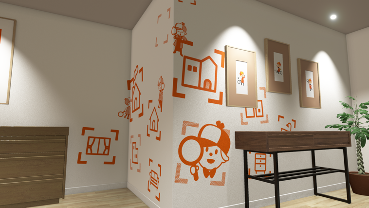 また、今回のイベントでは、ホームズくんをイメージした壁紙やインタラクションを行えるカードなどをご用意しております。ぜひ、VRならではの臨場感や内装の変化などを体感してみてください。