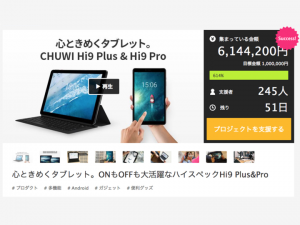 2019年3月5日より、CHUWIはタブレットHi9シリーズ「Hi9 Plus」と「Hi9 Pro」をMakuakeにて先行予約販売スタート。プロジェクト公開してわずか3日目、既に600万円を超える支援と期待のコメントが殺到しています。