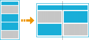 HTML5で制作されたスマホ用のコンテンツをPC幅に自動的にレイアウト調整します。簡単に素早くサイトの1ソース・マルチデバイスを実現する、モバイルファースト時代にフィットした新しいWebサイト構築手法です。