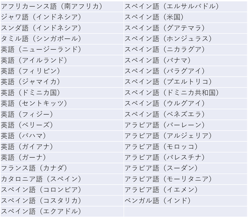 日本語、英語、中国語、韓国語、スペイン語、フランス語、ドイツ語、ロシア語