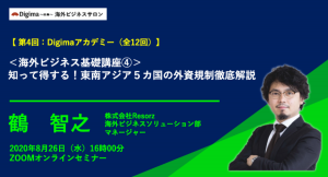 【 第4回:Digimaアカデミー(全12回)】 <海外ビジネス基礎講座④> 知って得する!東南アジア5カ国の外資規制徹底解説|8/26開催