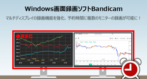 複数のディスプレイを使用する場面は、主に業務関連で想定されます。デイトレーダーがさまざまな銘柄の株式チャートをマルチディスプレイ上でモニタリングしたり、2台以上のマルチモニター環境で日々のPC作業画面を録画したい場合など、今回のアップデートにより「Bandicam」の画面録画、予約録画機能の利便性が向上し、結果的に業務効率の向上につながることが期待されます。