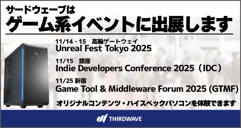 ハイエンドを中心としたBTOパソコンの企画・製造・販売を手掛ける株式会社サードウェーブ(取締役社長 永井正樹 東京都千代田区)は、ゲーム制作者・パブリッシャー・ユーザーが参加する展示会・カンファレンスに出展します。ハイスペックパソコンの性能を、現地でぜひ体感ください。
