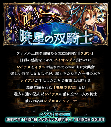 超本格王道RPG『グランドサマナーズ』(配信「株式会社グッドスマイルカンパニー」開発「株式会社 NextNinja」、監修「株式会社アイディス」)は、レグルスとフィーナにスポットを当てた大型イベント『暁星の双騎士』、『フィーナ』の覚醒解放、新巨大ボスダンジョン、および限定英雄がピックアップされる新召喚『英雄祭・絆』についてお知らせします。(グランドサマナーズ運営事務局プレスリリース)