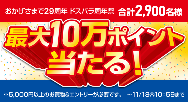 【ドスパラよりリリース】おかげさまで29周年 抽選で最大10万円分のドスパラポイントが当たる 『ドスパラ周年祭』 開催