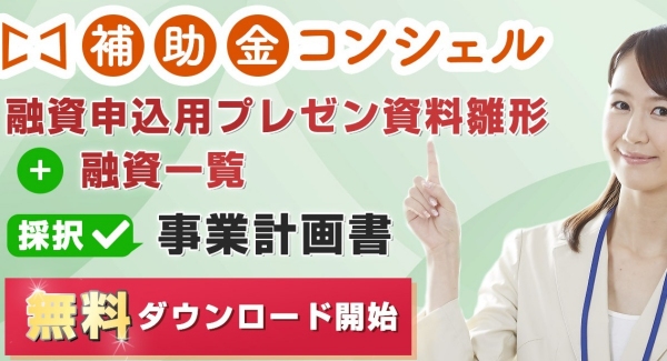[写真]【無料開放】「補助金コンシェル」にて「融資申込用 プレゼン資料雛形・融資一覧」及び「事業計画書例の採択実例」無料ダウンロード開始