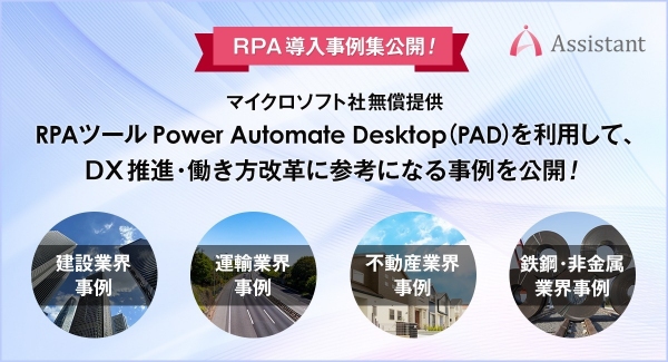 Power Automate Desktopを中心としたRPA領域の導入コンサルティングサービスを展開する株式会社アシスタント(東京都千代田区、代表取締役:合原恵)は、DX推進を検討する際に、参考になるRPA導入された事例集を公開いたしました。(株式会社アシスタントプレスリリース)