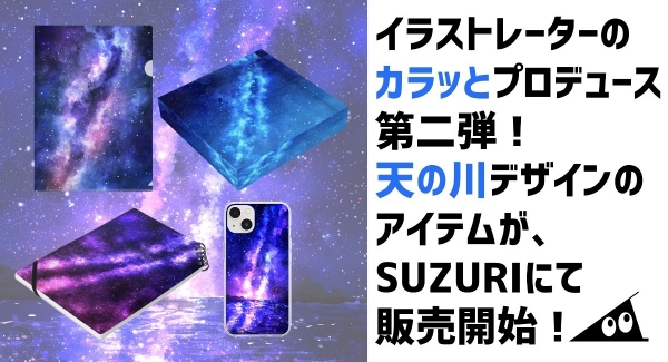 [写真]イラストレーターの「カラッと」が、オリジナルグッズの作成・販売ができる「SUZURI」で9月12日に「天の川」をモチーフにした多彩な作品の販売を開始
