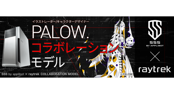 クリエイター向けPCブランドraytrekは、クリエイティブ集団SSS by applibotに所属するイラストレーター・キャラクターデザイナーのPALOW.氏とのコラボモデル3機種を全国のコンピューターショップ「ドスパラ」各店舗、およびドスパラ通販サイトにて2023年5月18日(木)より販売開始しました。(株式会社サードウェーブ レイトレックプレスリリース)